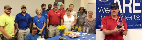 The Carrier President’s Award is Carrier’s highest dealer honor. This annual award is designed to encourage self-analysis and reward individuals who have exceeded high expectations, not only as a Carrier dealer, but also as one of Carrier’s Factory Authorized Dealers, who are held to an even more exacting set of standards. Carrier awards this honor to deserving dealers to support business improvements and show gratitude for customer loyalty. Recipients serve as role models, sharing “best practices” to help cultivate excellence across the dealer group.